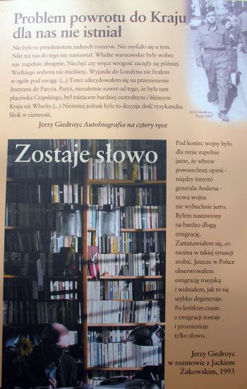 Celem wystawy jest przypomnienie postaci Jerzego Giedroycia oraz przybliżenie autorów zamieszkałych na emigracji z Kręgu Kultury (Andrzej Bobkowski, Józef Czapski, Witold Gombrowicz, Gustaw Herling-Grudziński, Marek Hłasko, Konstanty Jeleński, Leszek Kołakowski, Czesław Miłosz, Juliusz Mieroszewski, Sławomir Mrożek, Jerzy Stempowski …).