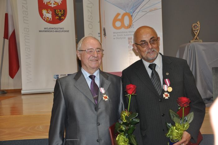 Z tej okazji prezydent RP, Bronisław Komorowski odznaczył 20 pracowników biblioteki Medalami za Długoletnią Służbę. Pracownicy otrzymali je z rąk wicewojewody warmińsko-mazurskiego, Jana Maścianicy. Z kolei Marszałek Województwa Warmińsko-Mazurskiego Jacek Protas przyznał 2 odznaki honorowe „Za Zasługi dla Województwa” w dziedzinie kultury – Romanowi Ławrynowiczowi i obecnemu dyrektorowi WBP Andrzejowi Marcinkiewiczowi. Potem wręczono pracownikom awanse i nagrody pieniężne. w grupie szczególnie wyróżnionych była Joanna Burska, która otrzymała tytuł Bibliotekarza Roku 2010 oraz honorową odznakę „Zasłużony dla Kultury Polskiej” przyznaną przez Ministra Kultury i Dziedzictwa Narodowego Bogdana Zdrojewskiego. Odznaką tą uhonorowana została również Wiesława Borkowska-Nichthauser, zastępca dyrektora WBP w Olsztynie. Na uroczystość przybyło wielu znamienitych gości, zaprzyjaźnionych z naszą instytucją, z regionu, Polski oraz z zagranicy. Jubileusz uświetniła swoim śpiewem Katarzyna Sobczyk. |