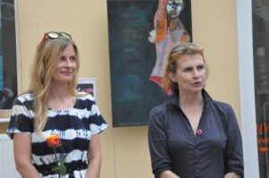 Bohaterowie moich obrazów, uwikłani w ludzką codzienność, próbują nadać sens swojemu życiu. Podejmują decyzje, których konsekwencje mogą być dla nich korzystne. Poprzez niezależne wybory wyrażają swoją wolność. Zawieszeni między przeszłością a przyszłością czasem cierpią. Czują się niespełnieni, nieszczęśliwi, wewnętrznie rozdarci i osamotnieni. Bywają też komiczni, o czym nie zawsze wiedzą. Intryguje mnie również życie tych, którzy bywają bezużyteczni dla świata, ciekawa jest ich bezcelowa wegetacja, która zdaje się tych ludzi zupełnie nie smucić. Malując, zadaję sobie pytanie: jakie są ideały ludzkiej egzystencji – Na jednej z prezentowanych prac uchwyciłam małżeństwo kupujące towary w promocyjnych cenach. Mocnym uderzeniem szerokiego pędzla, głęboką barwą, pospiesznie zaznaczyłam sylwetkę kobiety i mężczyzny. Ich otwarte usta zdające się krzyczeć: „obniżka cen”, jak ich puste oczy, ukazują ludzką wolność wyboru. Wolność wyboru – ten atrybut społeczeństwa w takich okolicznościach mnie przeraża.