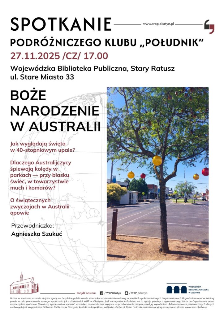 Jesteście ciekawi jak wyglądają obchody Bożego Narodzenie w 40 stopniowym upale? Czemu Australijczycy tak chętnie słuchają kolęd w parkach przy świetle świec i akompaniamencie much oraz komarów? Co można znaleźć na świątecznym stole na końcu świata? Czemu australijski Mikołaj zaprzęga do swych sań kangury? Jakie kolędy śpiewa się, gdy za oknem pełnia lata?